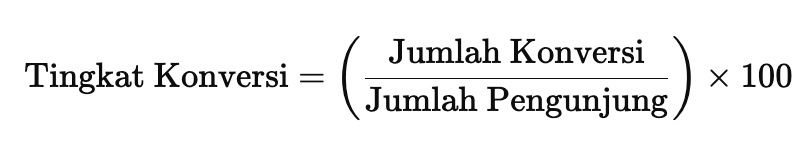 Tingkat konversi adalah persentase pengunjung yang melakukan tindakan yang Anda inginkan, seperti melakukan pembelian atau mengisi formulir kontak. Untuk menghitungnya, gunakan rumus berikut: